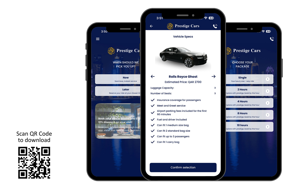 Download and hail your limousine service with a tap of a button from our mobile app. A convenient way to move around Doha anytime, anywhere.